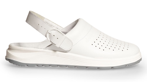 Komfortní anatomický tvar, sandál z hovězí kůže nebo z mikrovlákna, zesílená patová část, neklouzavá podrážka z PVC odolná oděru, ohybu, olejům a živočišným tukům, antistatické provedení.