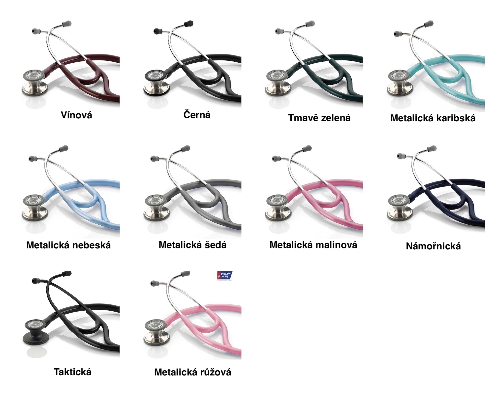 * hrudní koncovka z chirurgické nerezové oceli * technologie AFD pro vylepšenou akustickou odezvu u membrán pro dospělé i děti * hluboký zvon pro výbornou nízkofrekvenční odezvu * nechladící okraje zvonu a membrány pro pohodlí pacienta * lyra z nerezové oceli v úhlu 15 st. pro maximalizaci pohodlí a akustické utěsnění * dvouprůchodová flexibilní hadička bez ftalátů * silikonové olivky pro maximální pohodlí při nošení a akustické utěsnění