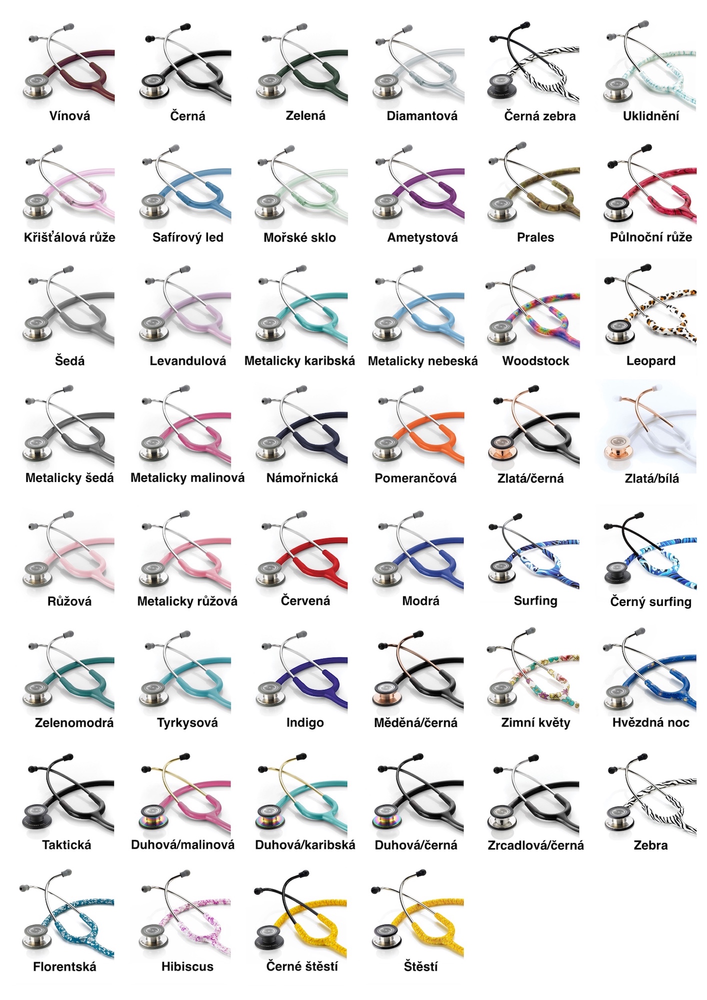 Technické vlastnosti * průměr membrány pro dospělé 4,45 cm * průměr pediatrické membrány 3,5 cm * průměr zvonu 3,5 cm * délka hadiček 53 cm * celková délka 76 cm * hmotnost hrudní koncovky 95,4 g * celková hmotnost 164 g