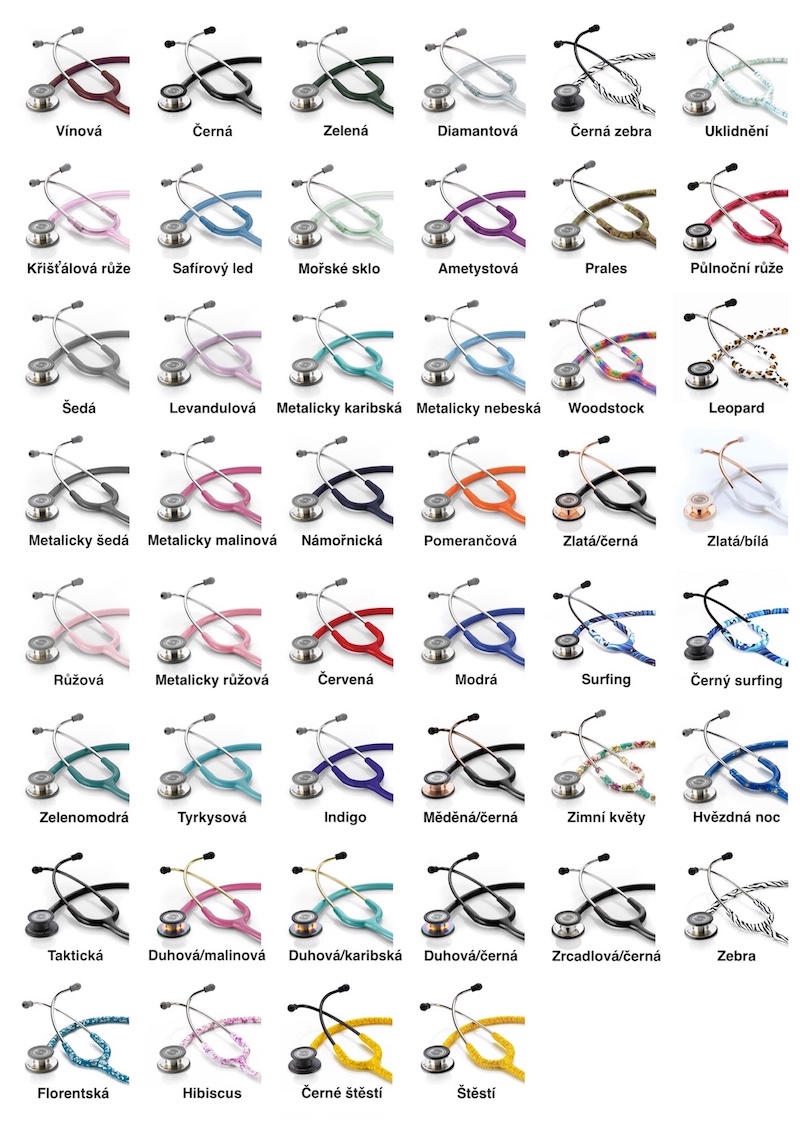 * membrána na obou stranách * vhodný pro auskultaci dospělých i dětí * malá membrána vhodná pro auskultaci na nepřístupných místech, v okolí bandáží, u malých pacientů, v pediatrii, v oblasti karotid * malou membránu lze sejmout a vytvořit tak klasický trychtýř * hrudní koncovka z chirurgické nerezové oceli * technologie AFD pro vylepšenou akustickou odezvu u membrán pro dospělé i děti * hluboký zvon pro výbornou nízkofrekvenční odezvu * nechladící okraje zvonu a membrány pro pohodlí pacienta * lyra z nerezové oceli nastavená v úhlu 15 st. pro maximalizaci pohodlí a akustické utěsnění * flexibilní hadičky bez ftalátů * silikonové olivky pro maximální pohodlí při nošení a akustické utěsnění