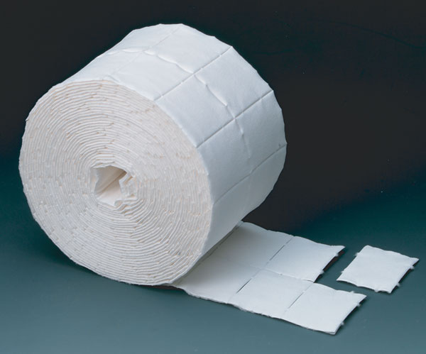 Buničité čtverečky jsou vyrobeny z mnohavrstvé bělené buničité vaty a jsou navinuté na roli. Lehce se oddělují a při použití nepráší.