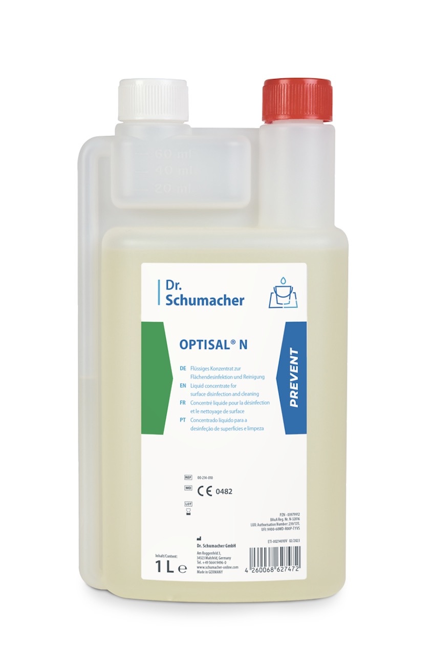 OPTISAL N je bezaldehydový koncentrát používaný k čištění a dezinfekci zdravotnických zařízení, neinvazivních zdravotnických prostředků a povrchů všeho druhu. Tento povrchový dezinfekční prostředek neobsahuje aldehydy ani fenoly, a proto má obzvláště příjemnou, svěží vůni. Optisal N lze tedy použít i tam, kde by nepříjemné pachy představovaly problém. Optisal má široké spektrum účinku a vysoký čisticí účinek.