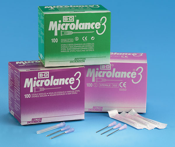 Značkové sterilní velmi ostré jednorázově balené jehly.