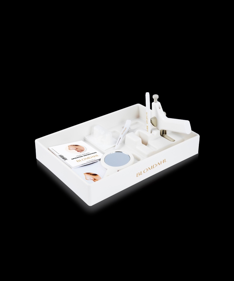 Lékařská souprava obsahuje přístroj Piercer, 10 sterilních plastových náušnic krystal, čisticí čtverečky, značkovací fix, papírové ucho pro nácvik, svorku na vlasy, 12 vzorků náušnic, návod k použití a box pro uložení.