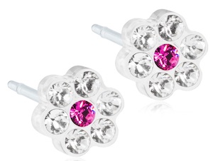 Náhradní kazeta s plastovými náušnicemi, SEDMIKRÁSKA, KRYSTAL/RŮŽE, 10 ks