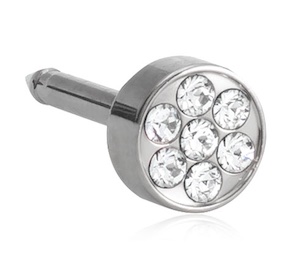 Průměr hlavičky 4 mm, délka dříku 6 mm. Tyto náušnice je možno použít pouze s přístrojem Piercer.