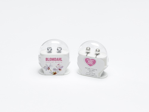 Nenastřelovací trvalé náušnice se dodávají hygienicky balené v krabičce, po páru, včetně pojistek.