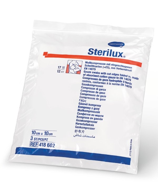 STERILUX, sterilní gázové kompresy, 100 % bavlna, 7,5 x 7,5 cm, 25 x 2 ks