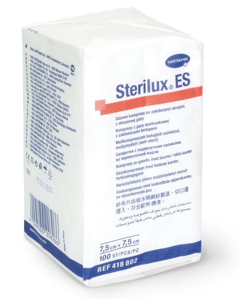 STERILUX, nesterilní gázové kompresy, 100 % bavlna, 10 x 20 cm, 100 ks