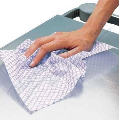 Víceúčelové utěrky jsou vyrobené z bílo-fialově potištěného netkaného textilu.