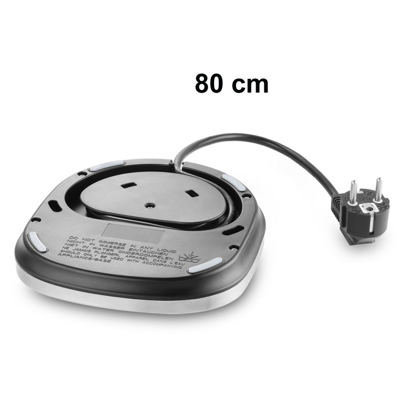 objem 1,7 l nerezová konvice s vodoznakem pod rukojetí ovládací panel s podsvícenými tlačítky 4 programy: 70, 80, 90 nebo 100 st.C udržování teploty 30 minut automatické vypnutí a ochrana proti přehřátí při zapnutí bez vody Napětí: 220 V - 240 V ~ 50/60 Hz Příkon: 2200 W