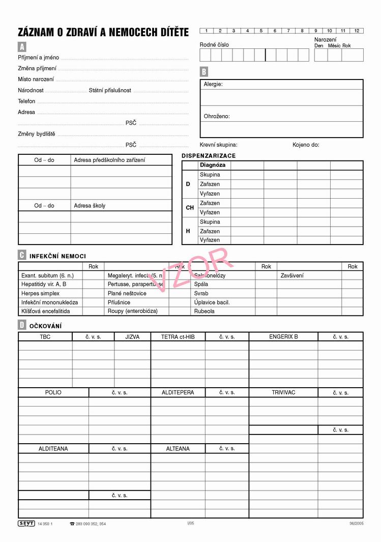 Záznam o zdraví a nemocech dítěte, 2 dvoulisty A4