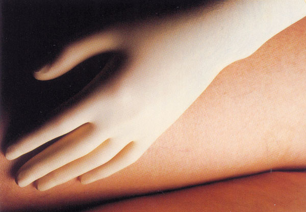 Latexové vyšetřovací nesterilní nepudrované rukavice, balené po 100 kusech v krabici.