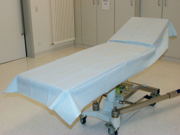 Prostěradlo je vyrobeno z celulózy, která je pokryta vrstvou plastu, nepropouští tekutiny na lehátko.