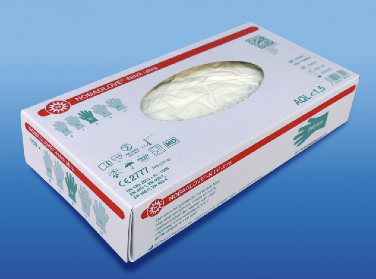 NOBAGLOVE Nitril ultra jsou nepudrované lékařské vyšetřovací a ochranné rukavice. Jsou vyrobeny z nitrilového kaučuku.