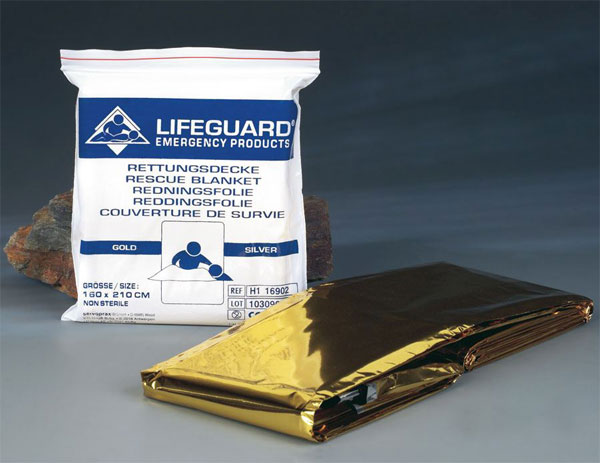 Záchranná fólie chrání postiženého před prochlazením a hypotermií, chrání i před slunečními paprsky a před vlhkostí.