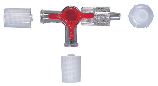 Sterilní kohout pro současnou aplikaci infúze a monitorování.