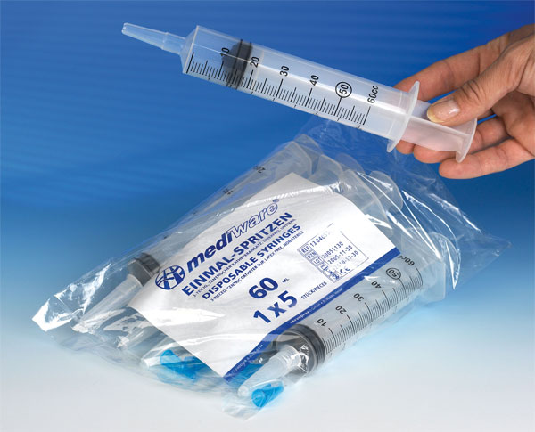 JANET 60 ml, stříkačka proplachovací třídílná, objem 60 ml, katetrový konus rovný, 1 ks
