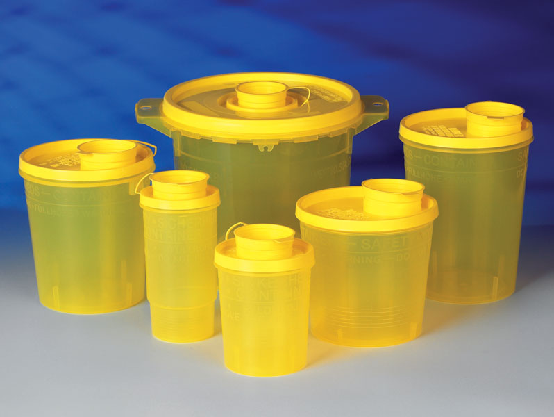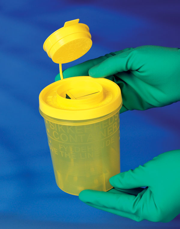 Zářez pro snadné sejmutí jehly, další zářez pro sejmutí inzulinové jehly PEN, záklopka bránicí vypadnutí infikovaných předmětů, u větších nádob další záklopka pro vložení stříkaček, křídlatých jehel nebo většího odpadu, jehlou nepropíchnutelný pevný plast, označení maximálního plnicího objemu, bezpečnostní hermetický uzávěr.