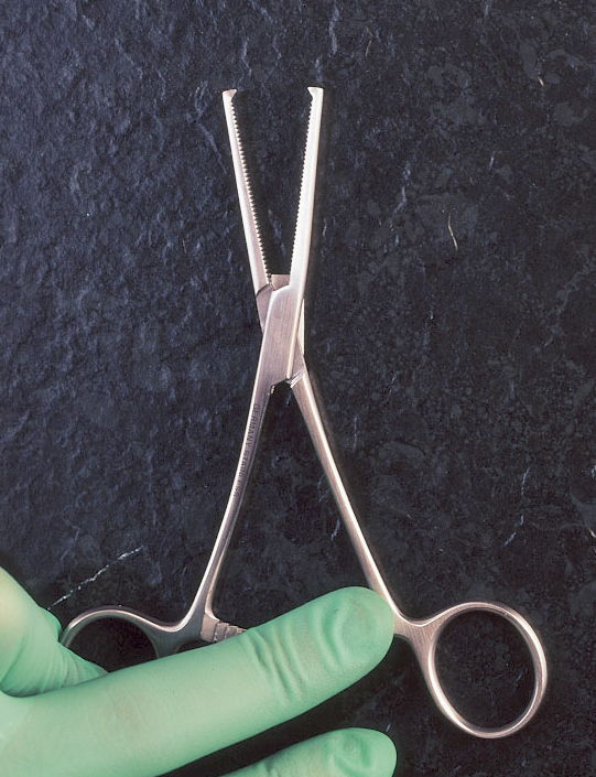 Kocher, cévní svorka, zahnutá, délka 14,5 cm
