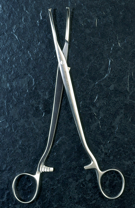 Mikulicz, svorka, zahnutá, délka 20,5 cm