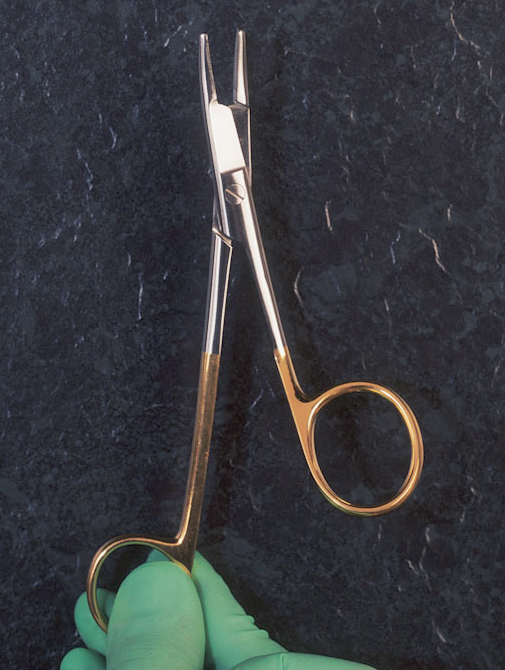 Jehelec, Gillies, tvrzená ocel WIDIA, pozlacená rukojeť, délka 165 mm