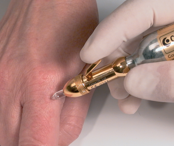 Indikace: metoda kryoterapie tekutým N2O je stejně efektivní jako klasická kryoterapie při použití tekutého dusíku (ochlazení na minus 196 stupňů Celsia) u veruk, angiomů, hemangiomů, seborhoických keratóz, neuralgií trigeminu, apod.